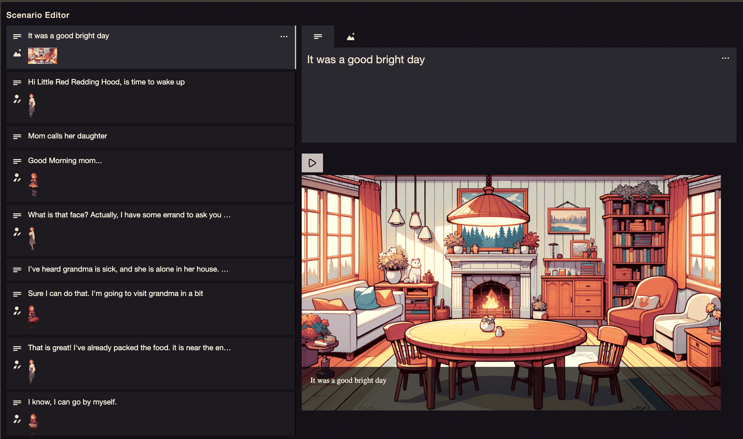 A spark of inspiration hit me when I was browsing some posts on Reddit. For the scene editor, what if we could put a text editor instead of the block editor? A text editor would be more familiar to people, and it would not require opening a separate dialog to edit the text. I gave this a try; I researched a lot about how rich text editors worked, and after many prototypes and trials, I concluded that it was possible. I considered this a breakthrough and a major UX improvement for the product.